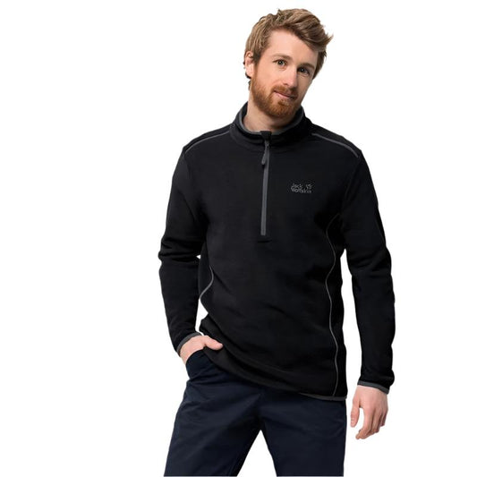 Jack Wolfskin Men's Echo 1/4 Zip Fleece Jumper in Black - Recycled Fleece