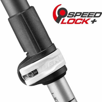 SpeedLock+ is a lighter, smaller evolution of the Leki SpeedLock (also known as SpeedLock 1), their original external locking mechanism. Adjustment is as quick and simple as flicking a lever and with a holding force of over 70kg it's ready to be relied upon throughout a long day trekking.