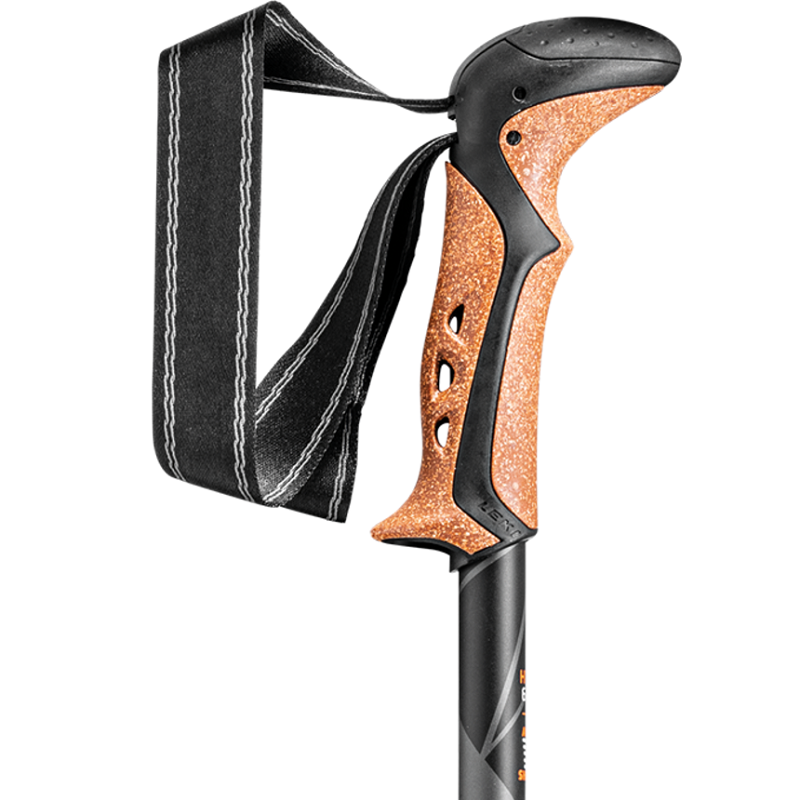 Leki's ergonomic Aergon grip shape makes all-day use comfortable too. You'll never find a corner, no matter where you hold it and the cork/rubber composite of CorTec is tactile but tough, with vent holes to keep your hand drier in summer. In addition the DSS module in the tip adds shock absorption for protection of your joints when walking on hard surfaces. A hardwearing strap and carbide Flex Tip complete the ensemble, ensuring quality from end to end.